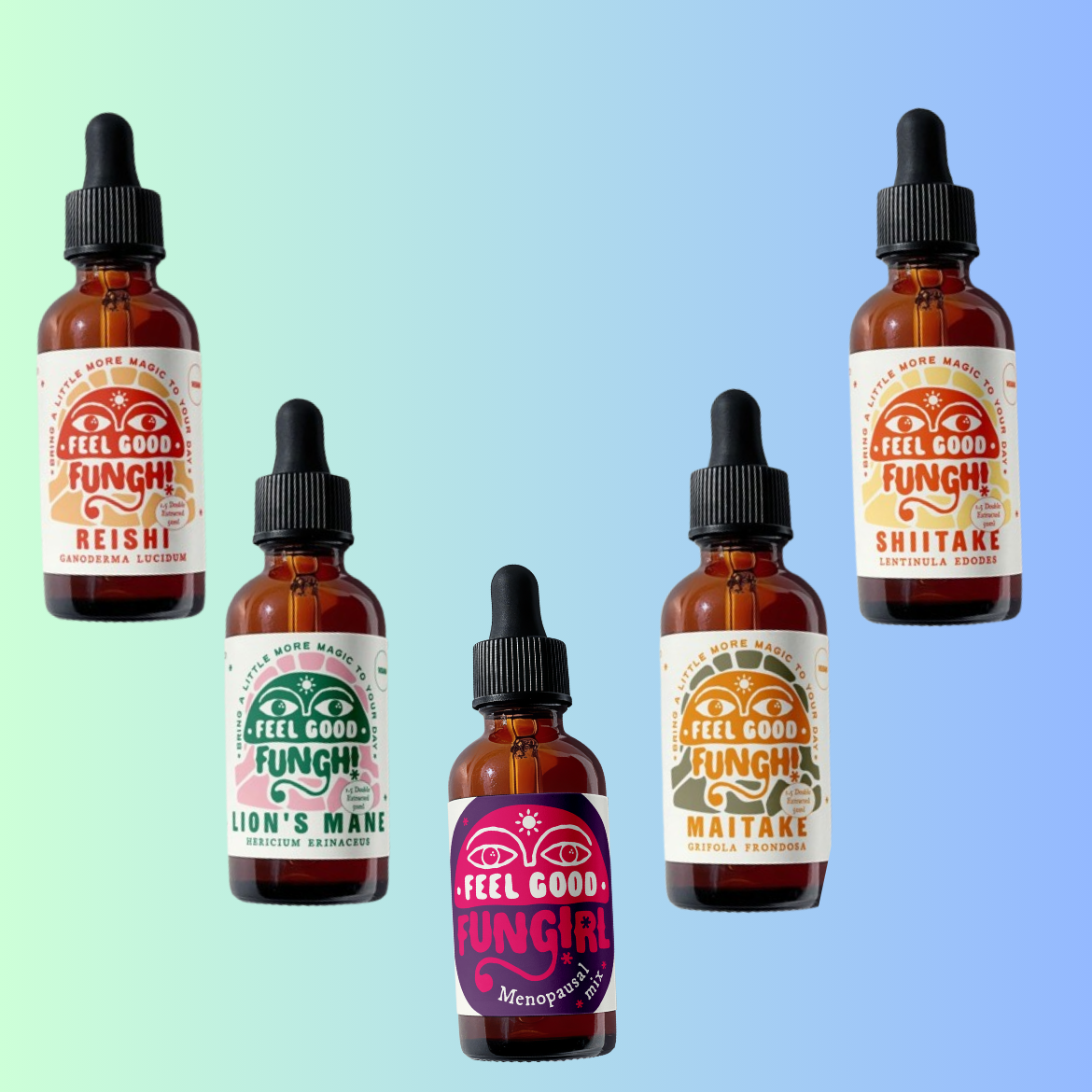 Feel Good Funghi’s immune-supporting tinctures harness the wisdom of six powerhouse fungi - Reishi, Lion’s Mane, Shiitake, and Maitake.